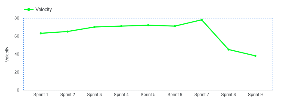 Example of a chart showing velocity changes over 9 sprints. Source: Author