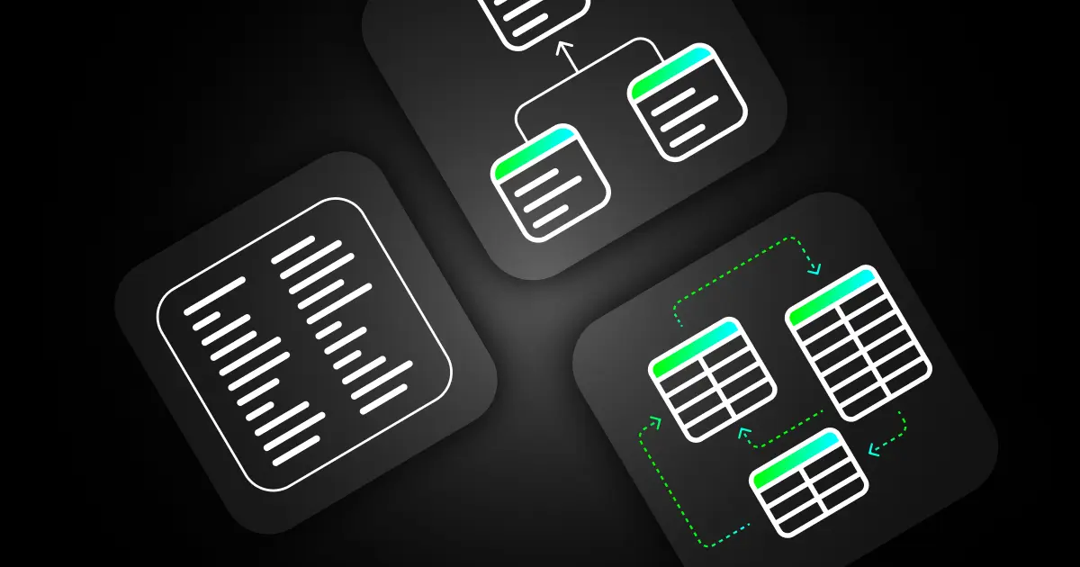 The simplest form — essentially a spreadsheet with rows and columns. Best for very small datasets, but quickly becomes limiting as relationships increase.
