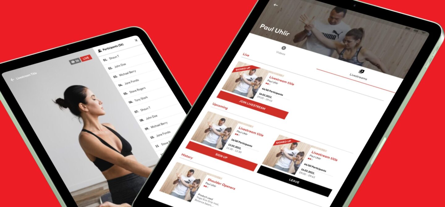 Results? Shaping and creating a mobile app and web app that engages more users and trainers, helps the company build a trustworthy relationship with amazing Airex products with 40+ pre-recorded videos and a 100% increase in live stream & screencasting.
