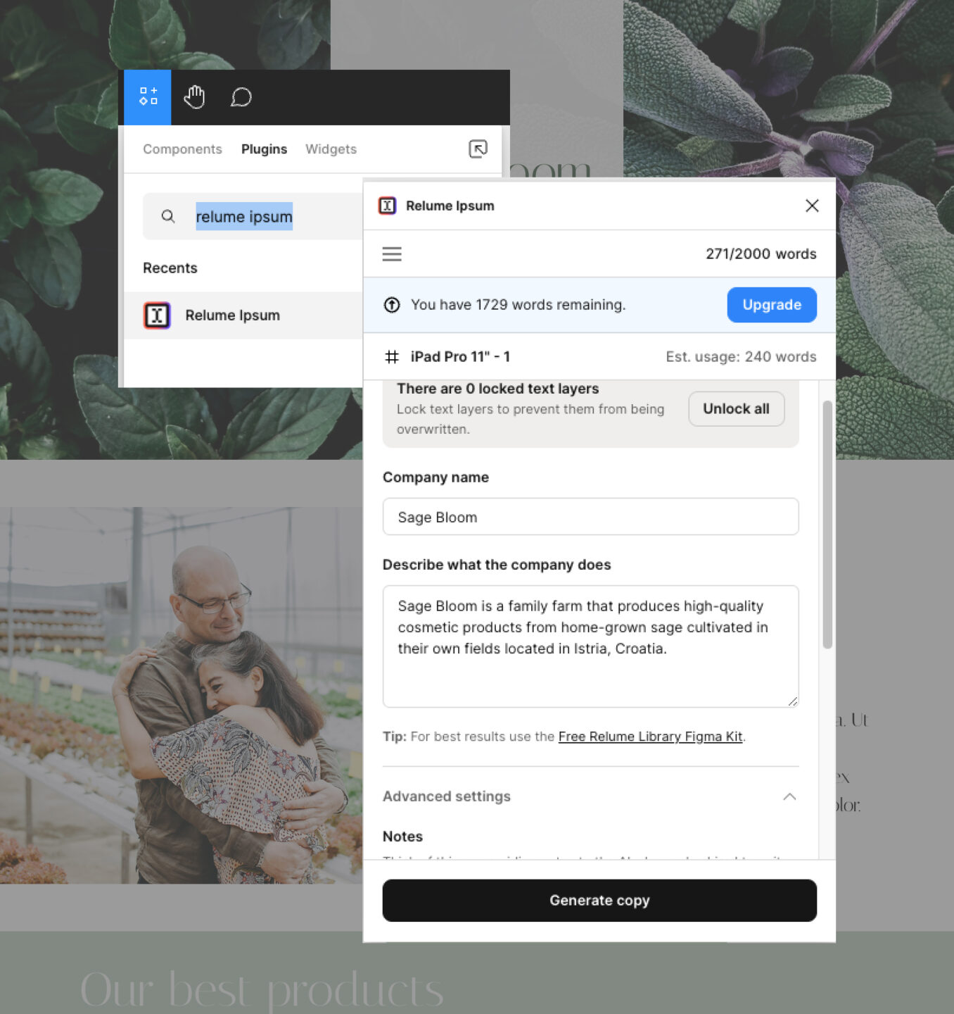 The Relume Ipsum plugin for Figma provides UX/UI designers with a quick and efficient way to generate placeholder text directly within their designs.