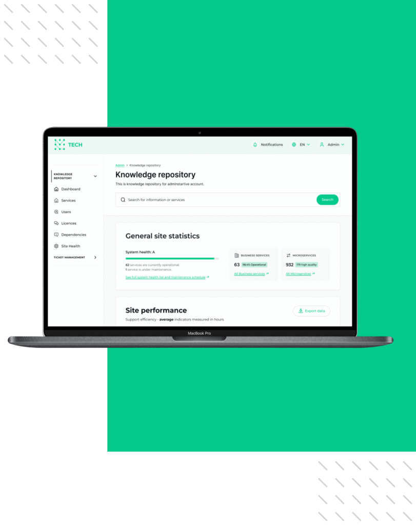 Backend development, Frontend development, UX/UI design, QA, Project, Program and Portfolio Management, Solution Architecture, Business Analysis, DevOps, Dedicated teams, Support