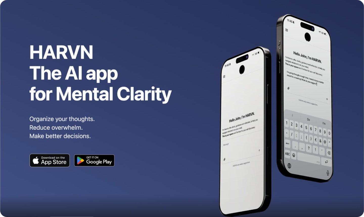 Their first product, HARVN Life, is a consumer app focused on private, personalised AI coaching for mental clarity and wellbeing, available on both Apple Store and Google Play.